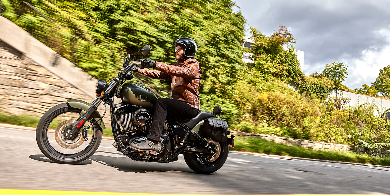 低いシート高、ソロサドル、自然なポジションのミッドマウントフットペグにより、チーフはすべてのライダーに満足の行くコントロールを提供します。